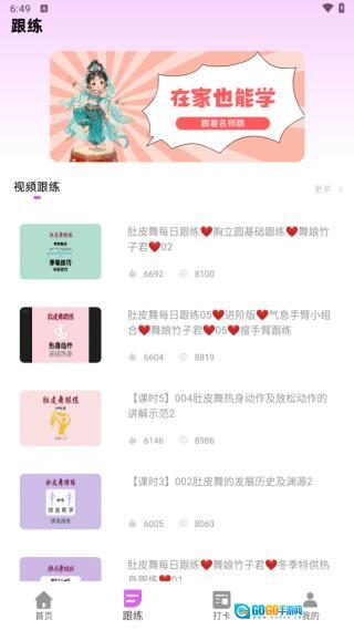 3、跟练板块,用户可以按照视频,跟着练习。