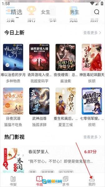 1、打开点点阅读,进入到用户界面,点击页面右下角的“我的”按钮;
