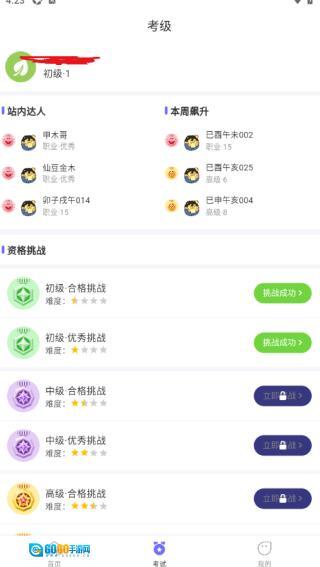 3、点击考试,可以提供考级服务,更有站内达人在线互动,让您轻松开启学习。