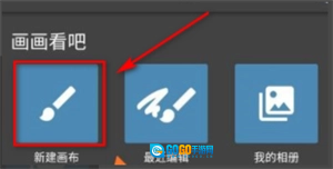 在手机上medibangpain软件,然后打开软件,来到首页,先要选择新建画布,点击进入。