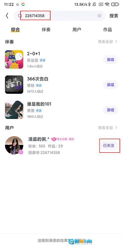 2、在搜索框输入好友ID,点击下方【关注】即可开启聊天。