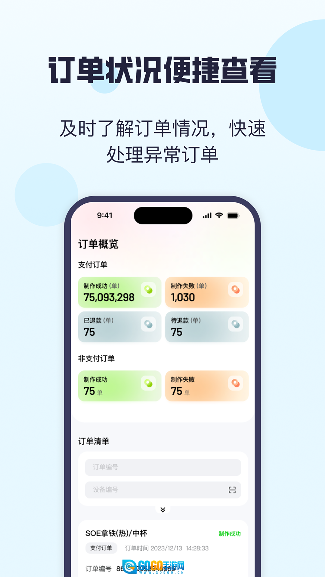 可以实时查看订单的状态,比如实际制作完成的订单数量、已退款的杯数、处于退款流程中的杯数,还能通过订单编号查询具体订单,信息展示得十分详细!