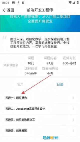3、进入课程页,查看课程体系,找到【阶段一:网页重构】。