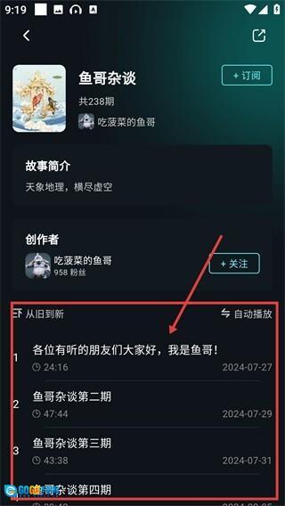进入内容详情页后,可查看该内容的全系列列表,选择想听的期数,即可开始播放对应的音频。