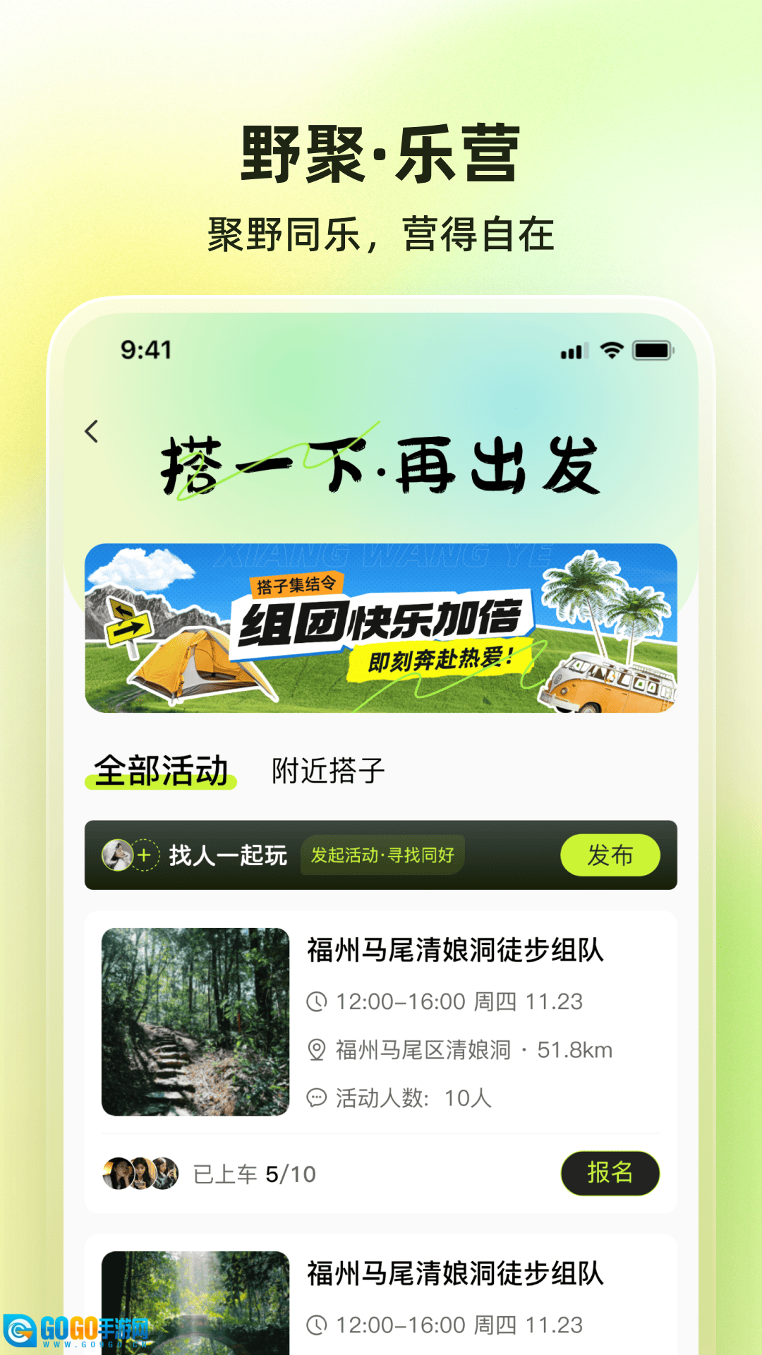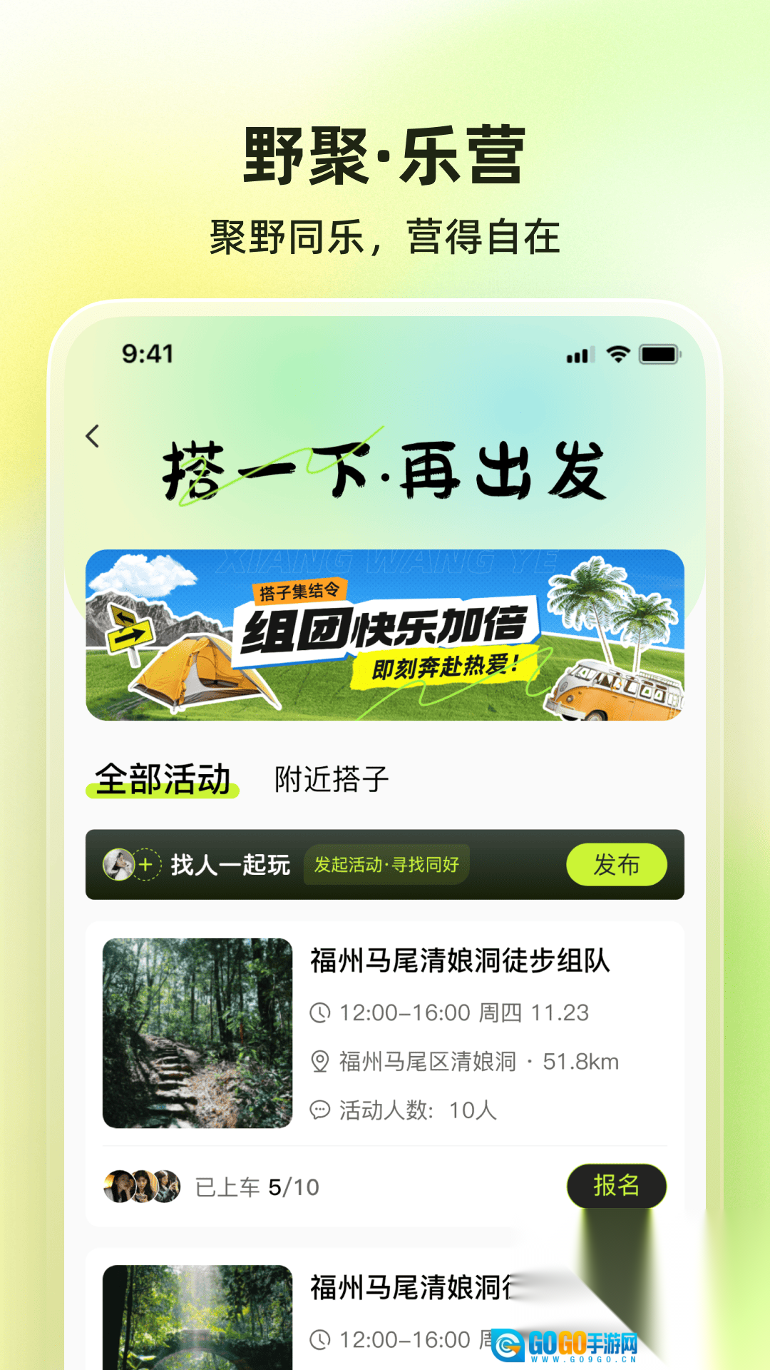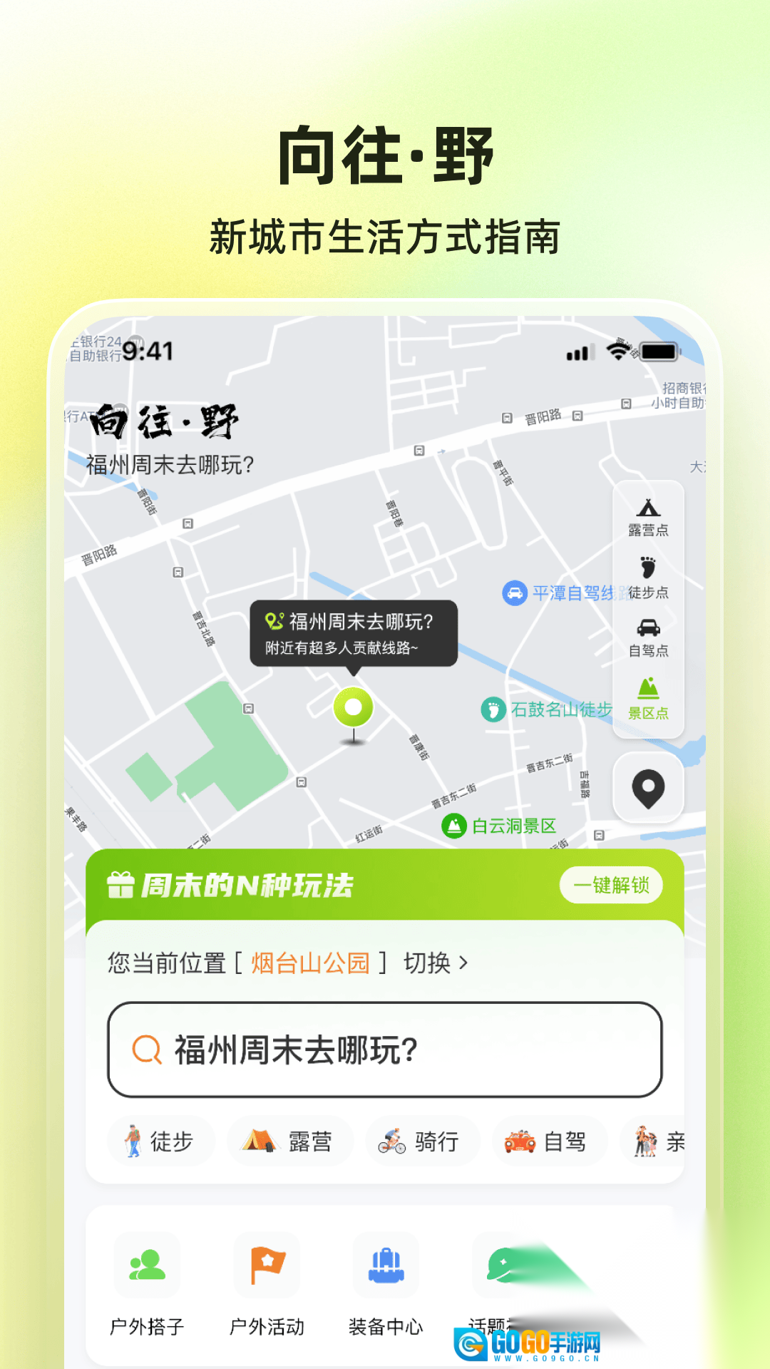 有很多不同的活动,用户参与这些活动可以体验不同的户外之旅。