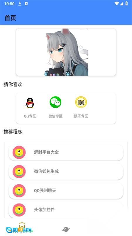 进入首页后,你可以看到多个功能模块,像QQ专区、微信专区和娱乐专区都在其中。