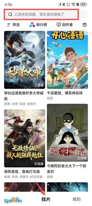 1、在本站火龙漫剧App,注册并登录账号后点击【找片】。