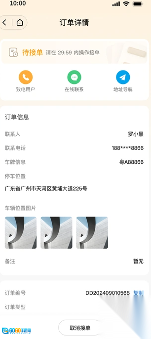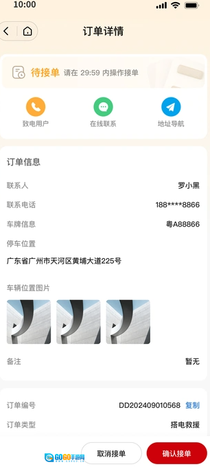 师傅可以第一时间接收到订单提醒,查看车主的位置、车辆的型号、剩余电量等详细信息。