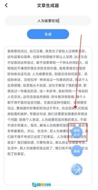 3、接着你所需要的文章就会自动生成出来,点击旁边的“复制全文”按钮就能一键复制
