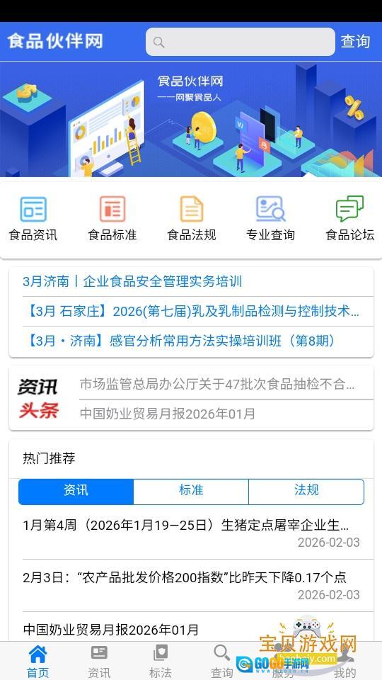1、在本站安装食品伙伴网打开,可以看到首页是带来了食品安全动态的