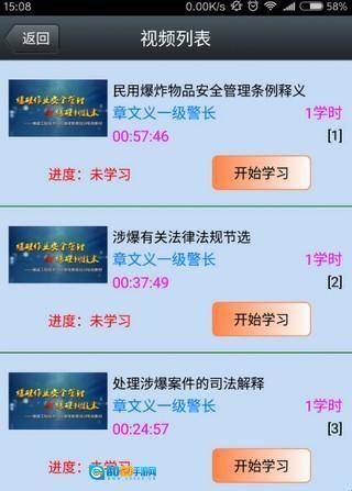 7、在视频列表界面,点击相应视频的“开始学习”按钮,可对该视频进行学习: