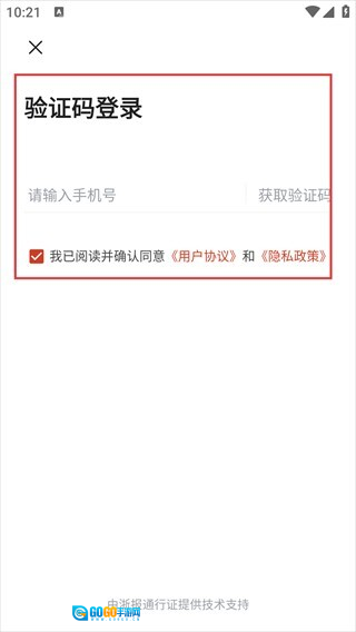 4、进入【验证码登录】页面,先确认已同意协议,再填写【请输入手机号】并点击【获取验证码】,完成登录信息填写。