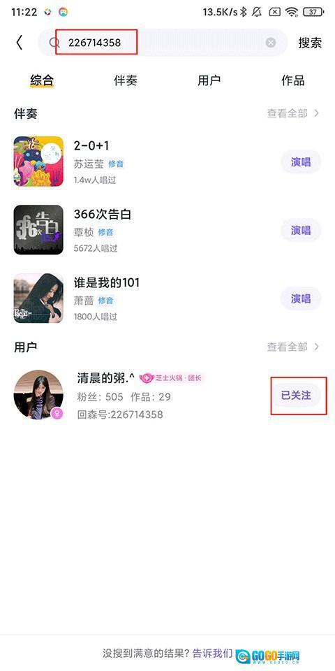 2、在搜索框输入好友ID,点击下方【关注】即可开启聊天。