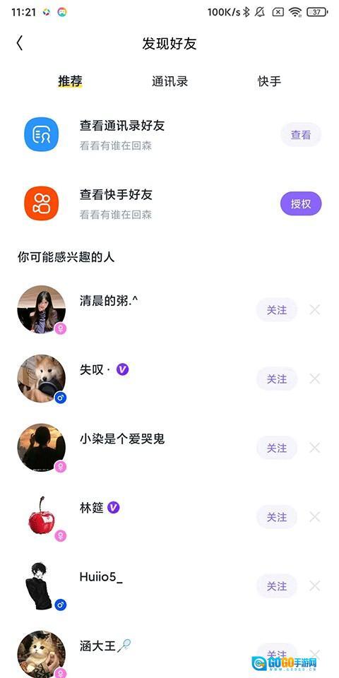 2、在【发现好友】页,选择需要好友渠道:通讯录/快手/可能感兴趣的人;
