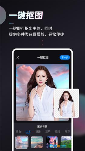 3、上传人像图片后,一键即可抠出主体,同时提供多种类背景模板,轻松便捷。