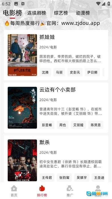 3、跟着笔者继续切换页面【排行榜】,这里每天都能将热度较高的几个影片整理出来,任何时间都能点击观看;