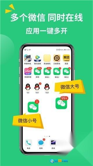 1. 轻松实现双重开启,告别来回切换的烦恼,让你自由分享、聊天,简单安装即可,且体验效果与源应用一致。