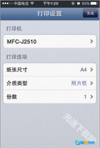 3、挑选打印机,确认纸张的尺寸、类型以及打印页数,接着点击完成按钮;