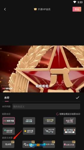 2、进入水印编辑页面,点击“无水印”选项即可,但是去除水印需要开通会员才可以。