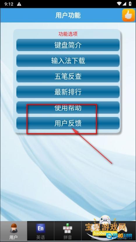 7、点击用户界面的用户反馈功能,对使用软件遇到的问题进行反馈,并留下自己的练习方式。