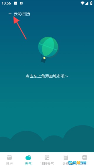 打开【天气】界面,点击左上角“+”图标。