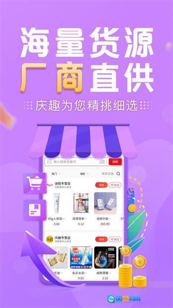 庆趣供货是一款广受欢迎的线上购物应用,平台汇聚了丰富多样的男女用品供用户选购。所有商品均由厂家直供、一件代发,即便仅购买单件商品,用户也能享受最优惠的价格,在购物过程中获得更多折扣福利。