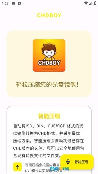 CHDBOY是一款非常好用的chd解压缩软件。玩家无需复杂操作,在手机上就能轻松畅玩PSP游戏,能够自动把ISO、BIN、CUE以及GDI格式的光盘镜像,转换成CHD格式,打开你就能轻松的选择各种游戏玩耍。