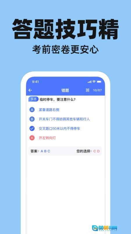 驾考好助手是一款能随时做题、方便复习的驾考刷题软件。它聚焦大众的备考需求,结合最新交通法规把知识点进行简洁汇总,便于大家理解;同时做题模式也比较简单,只有单选和多选两种,提交答案后能立即批改,让你直观了解自己的刷题正确率。