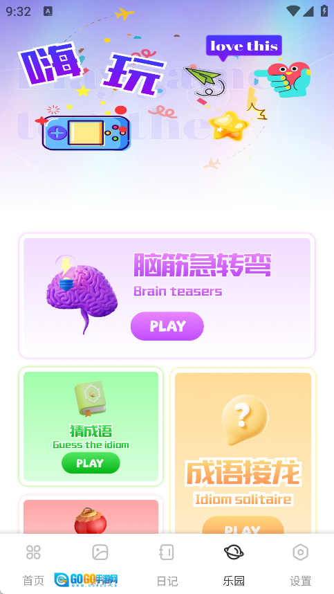乐园页面里包含了脑筋急转弯、猜成语、成语接龙等多种玩法的详细介绍。