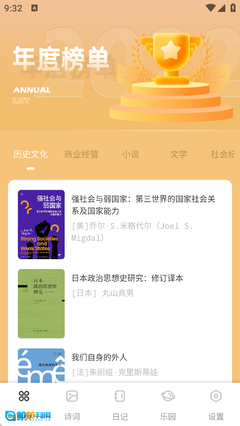 首页陈列着丰富多样的书籍,你可以从中了解到各类别的年度榜单详情。