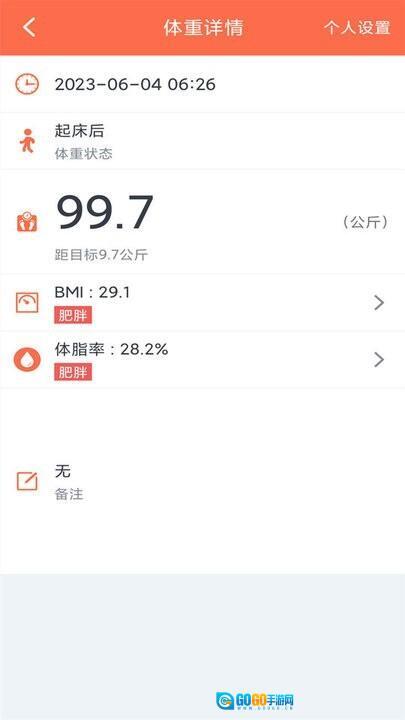 5.支持多单位切换:新增体重单位切换功能,可在公斤、斤、磅等单位间自由切换,以适配不同用户的使用习惯。