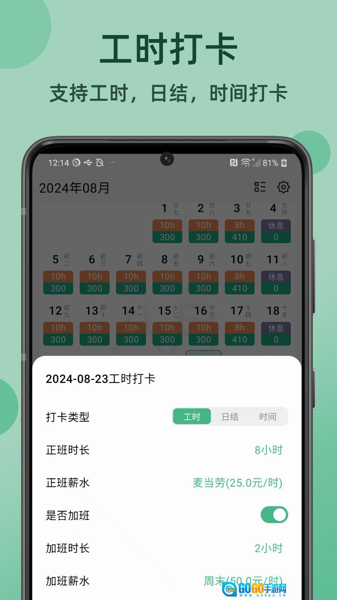4.数据分析:配备多样的报表与统计工具,助力用户精准掌握工作时长情况,进而优化时间分配方案。