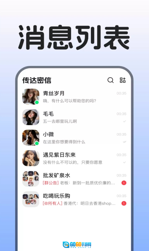 传达密信是一款优质且全面的通讯互动平台,涵盖多种沟通与互动模式,能轻松满足不同用户的互动沟通需求。你可以自定义开启各类社交模式,它是一款非常全面且高效的互动软件,每一位想社交的小伙伴都能随时体验,为你带来多种聊天模式。