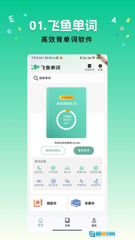 飞鱼单词是一款支持灵活自定义词书内容的在线教育软件,它呈现了新颖的单词背诵模式,能依据你的学习实力制定每日计划并提醒你按时打卡完成。平台还提供英式、美式两种标准的单词发音示范,你可以点击播放仔细聆听对比,检查自己的发音是否标准。