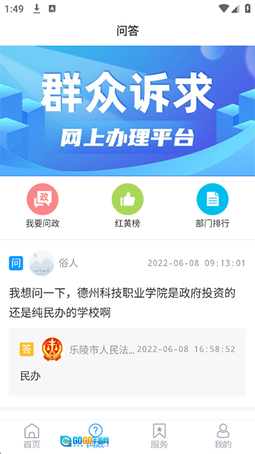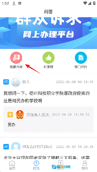 点击问政板块,既能浏览乐陵融媒用户分享的各类问政内容,也可以通过“我要问政”按钮发布自己的问政信息。