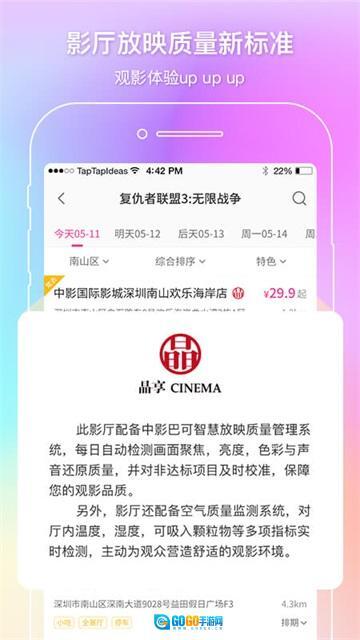 用户可以挑选离自己近或者心仪的电影院,还能查看不同影院的票价。