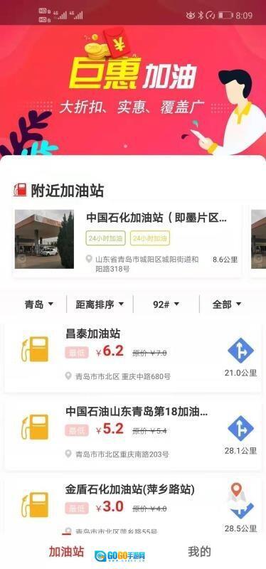 能快速对比各加油站的收费与距离,随即选定目标加油站。