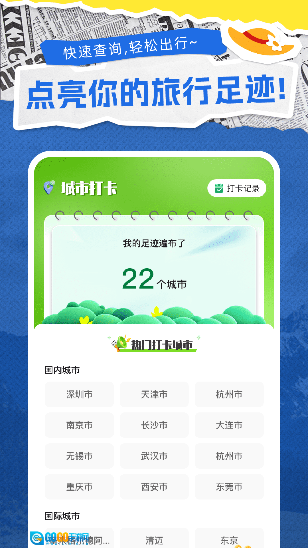 城市打卡与旅行足迹记录功能十分细致,能够记录用户打卡过的城市,并清晰展示其旅行足迹的分布情况。