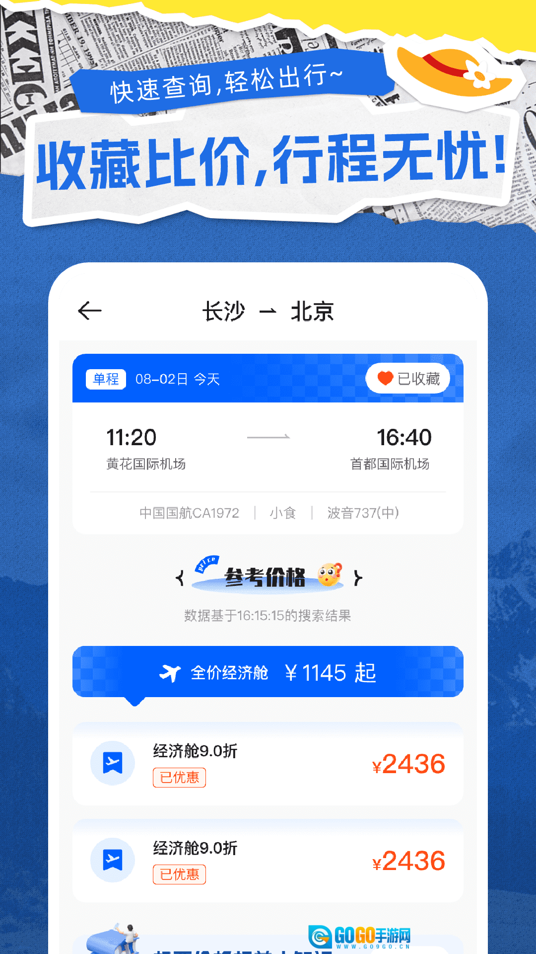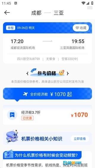 收藏比价功能十分实用,您可以收藏心仪的航班,对比不同的价格,让行程规划更加轻松无忧。