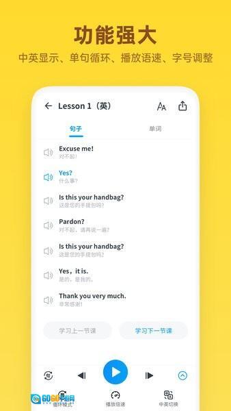 所有教材内容已预先安装,无需联网即可使用;夜间模式可有效保护视力健康;生词本搭配记忆测试功能,助力巩固所学;三种语速设置,满足不同学习需求;重点句型支持收藏,方便随时复习;学习进度自动同步至云端备份,数据安全不丢失。