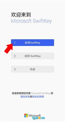 1、并打开微软输入法来到下方界面,点击第一步启用微软输入法。