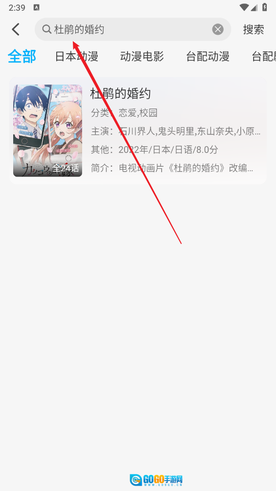 1、打开软件,一键搜索需要的动漫资源。