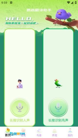 长按操作可触发人声与鸟语识别功能,录制鹦鹉语音并进行翻译的流程同样简洁明了,整个过程无需复杂操作步骤。