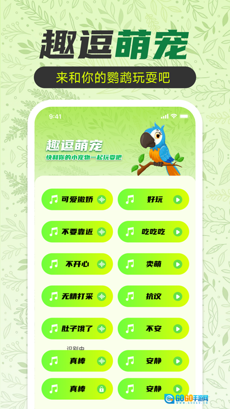 鹦鹉翻译助手是一款面向鹦鹉爱好者的娱乐互动软件,它具备逗宠音效、鹦鹉鸟语等功能,能帮助用户和鹦鹉更好地沟通,还能辅助科学养宠,让养宠生活更丰富。不管是想提升与鹦鹉互动乐趣的资深养宠人,还是需要养宠指导的新手,都适合使用这款软件。