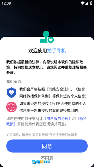 大家看到用户协议和隐私条款后,直接点击同意按钮即可。