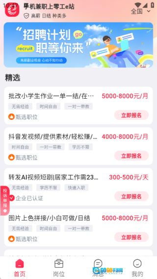 首页精选了丰富多样的各类工作,用户能快速找到并了解适合自己的岗位。