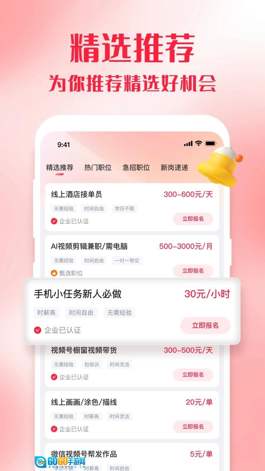 为灵活就业者打造了一个安全高效的兼职平台,这里岗位多样,使用起来也十分便捷。