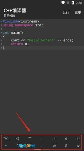 3、程序启动后,屏幕底部会呈现代码符号,便于用户快速输入。