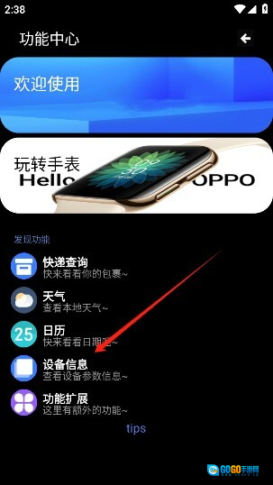 2、在功能中心页面找到“设备信息”功能并点击,就能查看手机详细的硬件和系统信息。