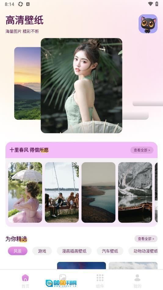 打开【壁纸】页面,查看各类分类与推荐内容,挑选出自己喜欢的壁纸。